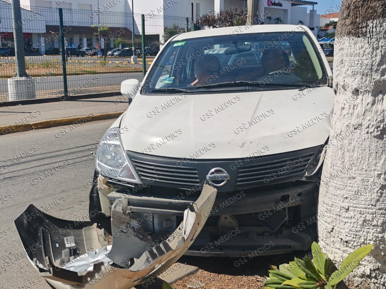 De acuerdo con los primeros reportes, la conductora intentó frenar al incorporarse a la vialidad; sin embargo, presuntamente pisó el acelerador a fondo en vez del freno, lo que provocó que el vehículo se impactara contra una palmera.