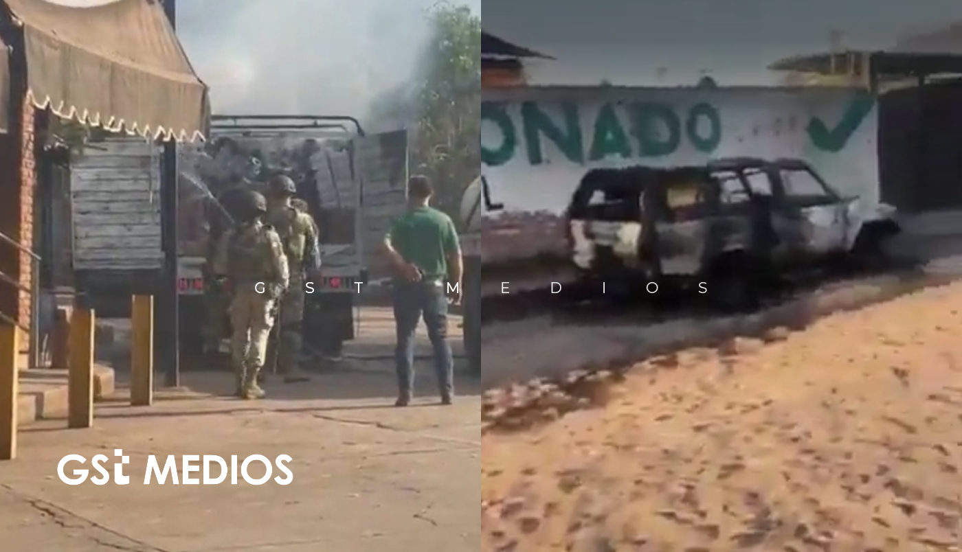 La violencia no da tregua en Aguililla, Michoacán. Autoridades estatales informaron la quema de vehículos, bases de combis y una sucursal del Banco del Bienestar, en una nueva jornada de hechos delictivos en el municipio.