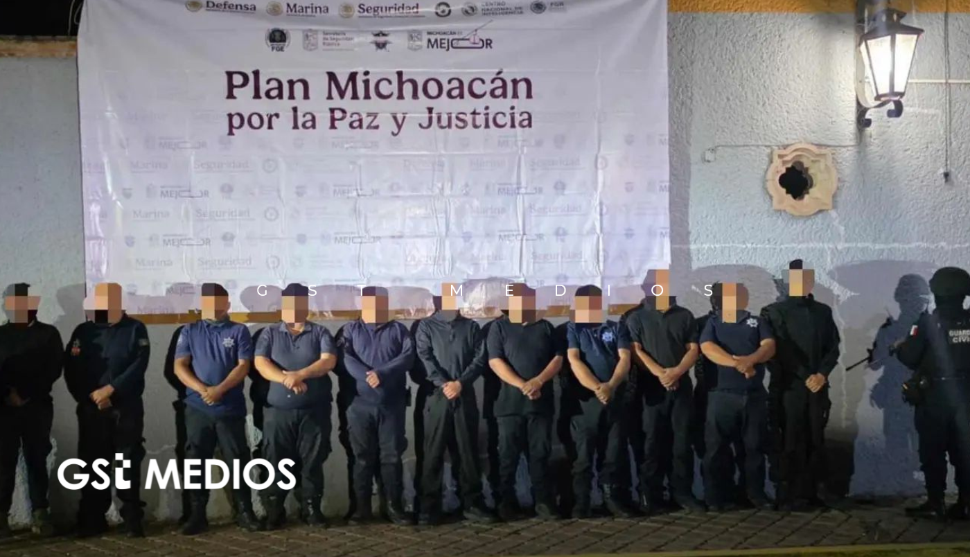 Once policías municipales, incluido el mando, fueron capturados en un operativo en la región de Zamora y trasladados a Morelia, por presuntos vínculos con el CJNG.