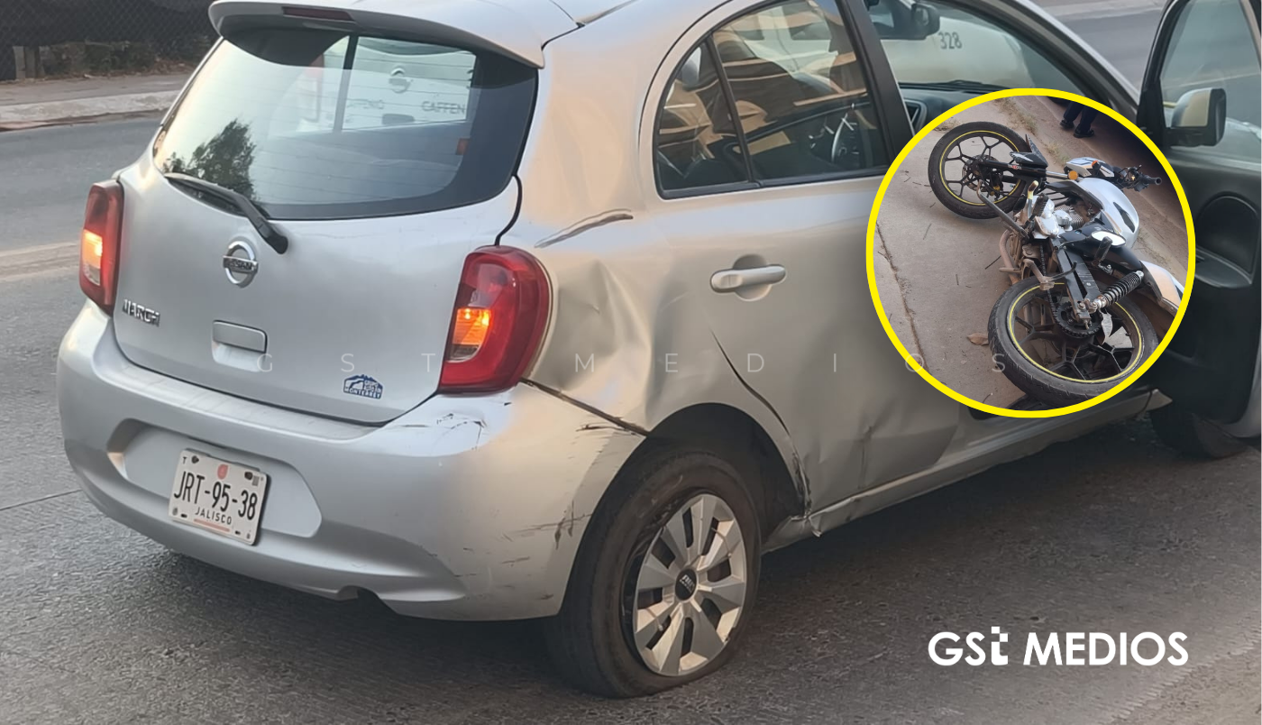 Un motociclista resultó seriamente lesionado del rostro después de impactarse contra la parte trasera de un automóvil Nissan March cuando ambos circulaban en la misma dirección sobre avenida México, entre las calles María Montessori y Prisciliano Sánchez.