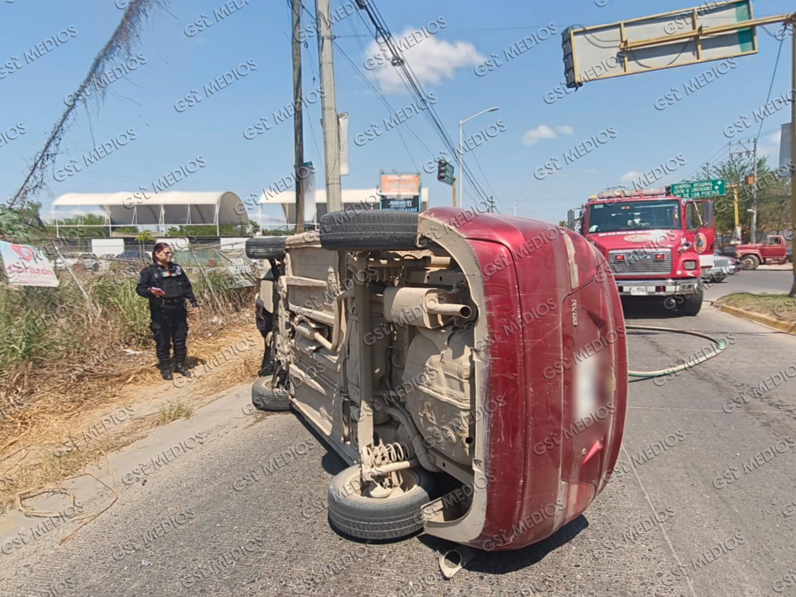 En el percance estuvieron involucrados un Nissan Aveo color rojo, una camioneta Ford Escape y una Nissan NP300. Tras el impacto, el Aveo fue el más afectado, ya que terminó volcado y quedó recostado sobre uno de sus costados.