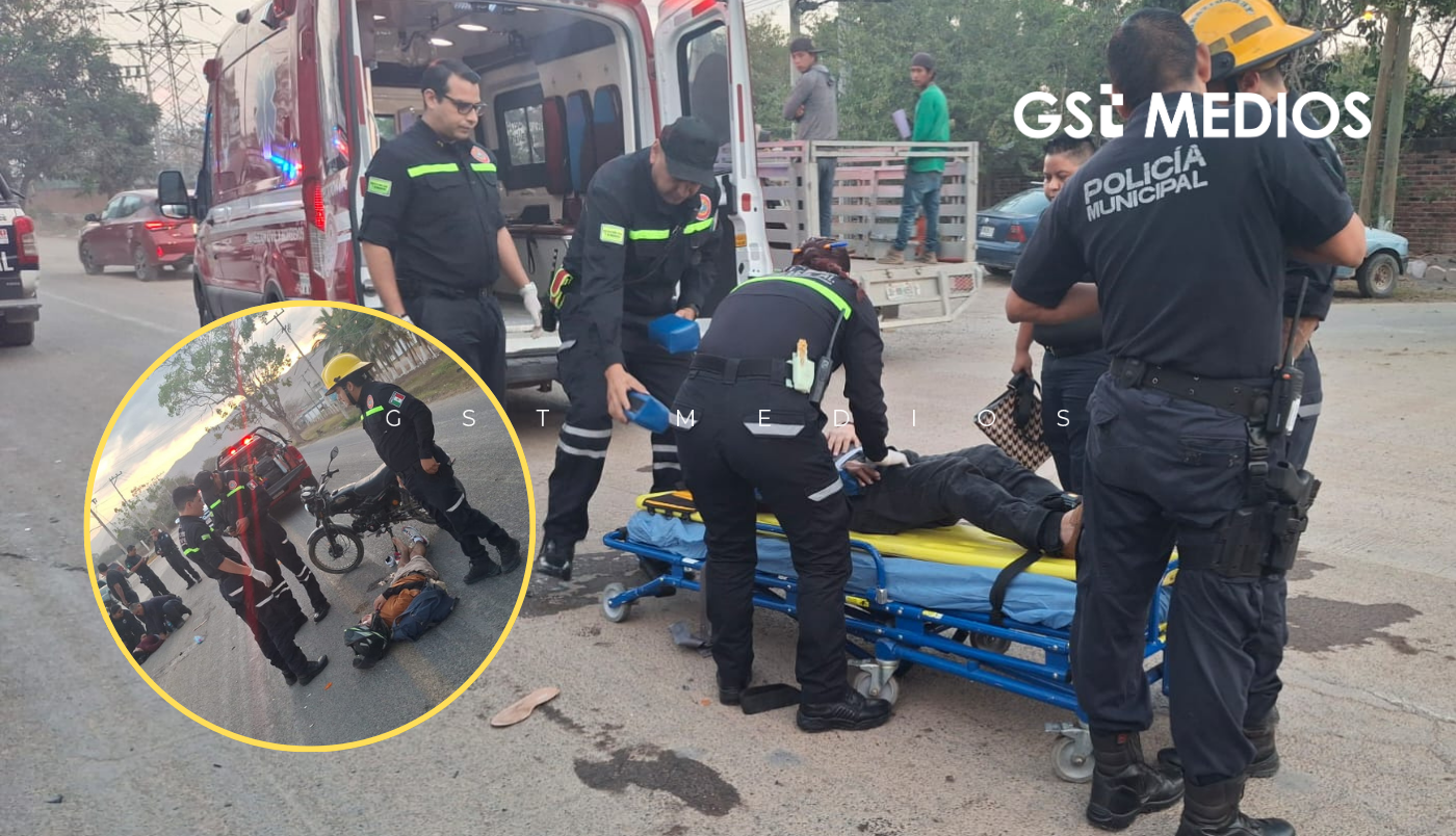 La operadora de cámaras de Seguridad Pública resultó con fractura expuesta tras ser impactada por una motocicleta cuando intentaba cruzar la vialidad frente a la corporación.