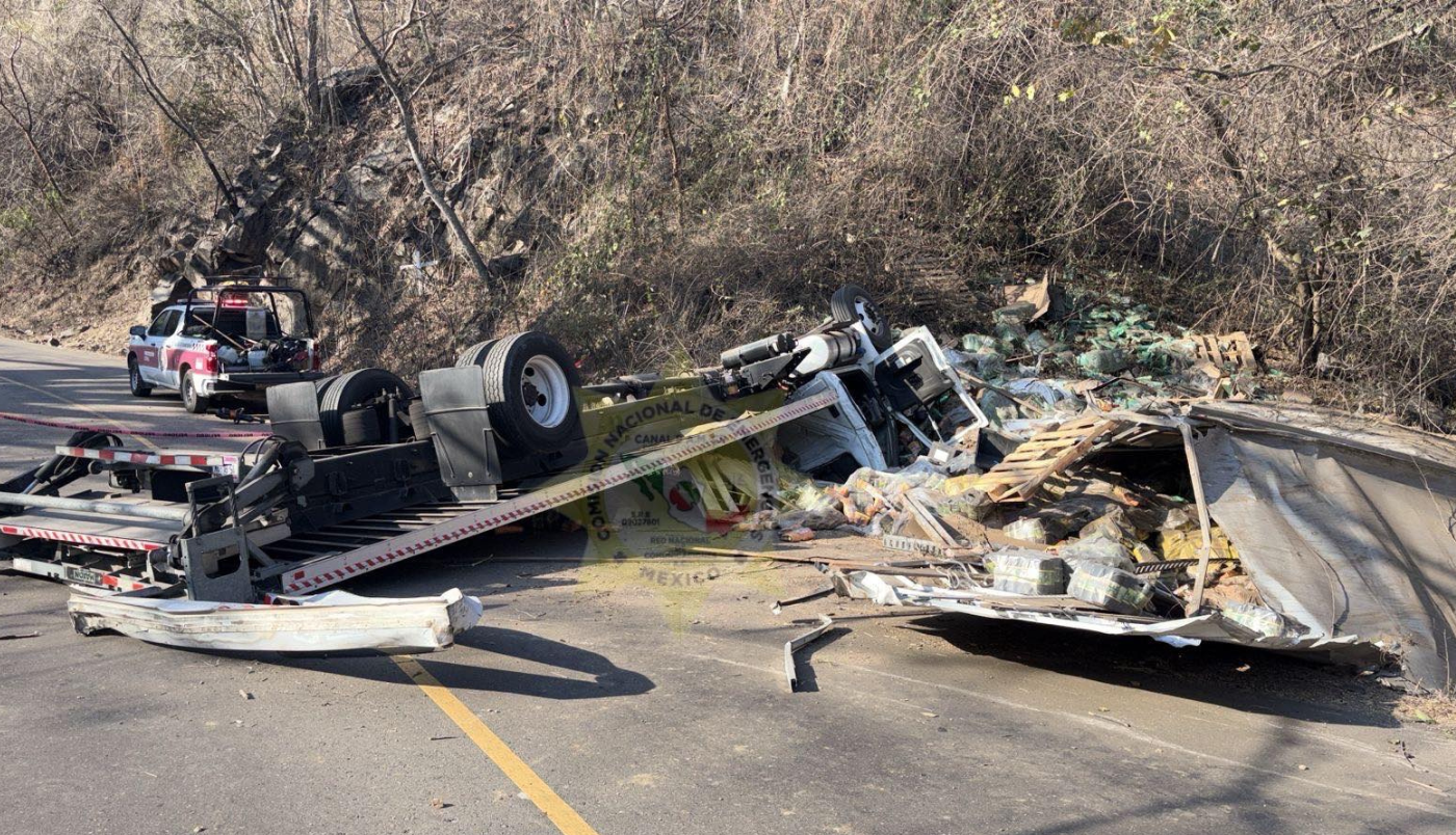 La volcadura de un tractocamión registrada la mañana de este viernes 17 de abril dejó como saldo una persona sin vida sobre la Carretera Federal 200 Tepic–Puerto Vallarta, a la altura del kilómetro 135, en el punto conocido como “La Santa Muerte”, en Bahía de Banderas.